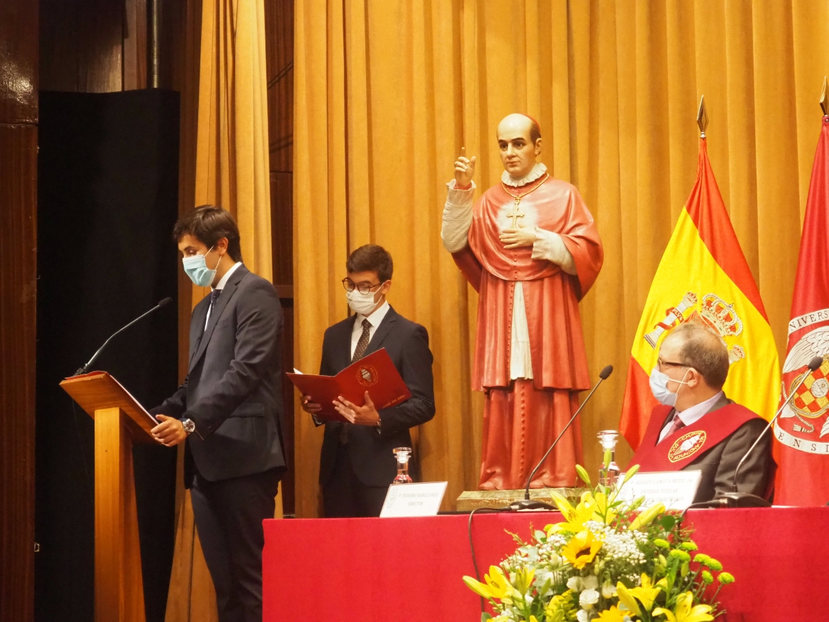 Luego el Padre Teodoro Bahillo, como Director del Mayor, también dirigió unas palabras a todos los colegiales, deseando un buen año académico a todos los presentes e invitando a los colegiales a disfrutar de la mejor manera la posibilidad que brinda un Colegio Mayor pese a las adversidades que nos presenta la realidad de la Pandemia. También hubo palabras cargadas de emoción y de buenos deseos por parte de D. Eduardo de Frutos, antiguo colegial invitado.