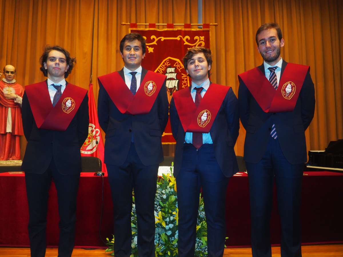 Otro de los momentos emocionantes del acto fue sin duda la imposición de becas e insignias a los colegiales de 4to curso del ciclo académico 2019-2020 que por motivos del confinamiento no pudieron recibir en tiempo y forma las distinciones que merecían. Los colegiales que recibieron beca de insignia fueron los siguientes: D. Juan Pablo de la Cruz del Ser – D. Diego Díaz Fernández – D. Juan José García Núñez – D. Juan Gómez García.