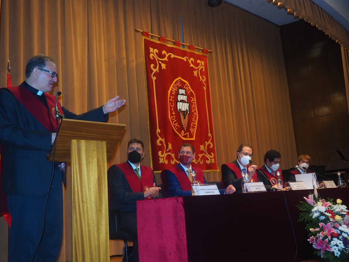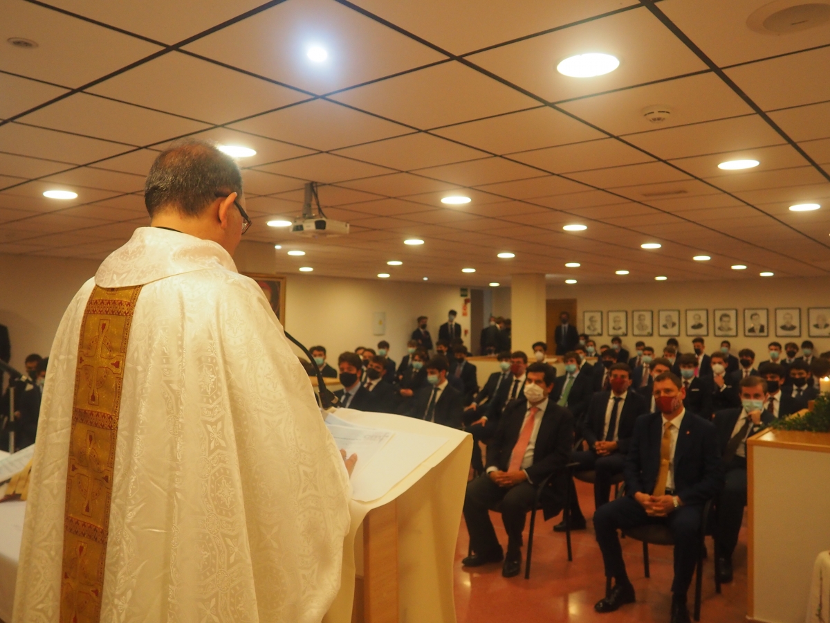 Posteriormente se inició el Acto Académico en el Auditorio “Gregorio del Amo”. La mesa fue presidida por el Superior Mayor de los Misioneros Claretianos, P. Adolfo Lamata Muyo, CMF., y completada por nuestro Director, Dr. D. Carlos Pesado Riccardi, los subdirectores D. Manuel Córdoba Raigón y Samuel Alonso Benito; y el invitado especial para la ocasión, D. Eduardo Estévez Gudino, Director de la Asociación de Empresa Familiar de Castilla y León, y antiguo colegial becado de nuestro Mayor, que cursó sus estudios de Derecho y ADE en la Universidad CEU San Pablo, además del Máster en Derecho Deportivo y Máster por el Instituto de Empresa; residió en nuestro Colegio durante 6 cursos (1989-1995).