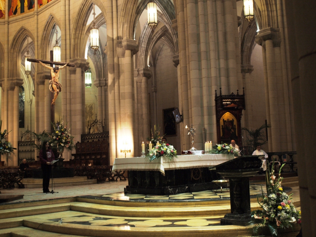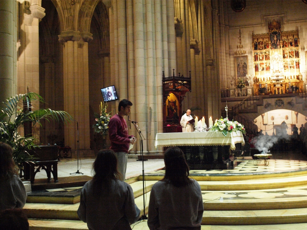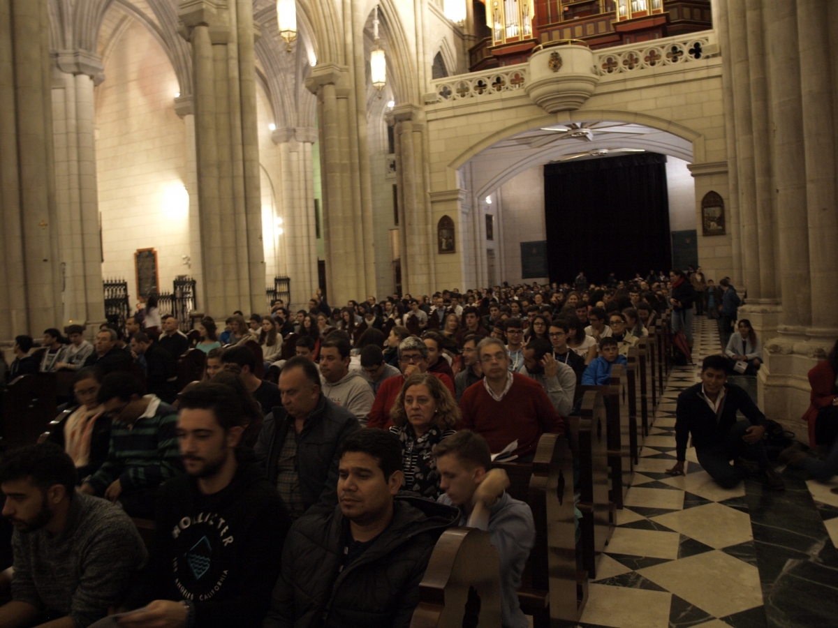 Este primer viernes del mes de noviembre, nos reuníamos, como viene sucediendo desde la llegada de nuestro arzobispo D. Carlos Osoro a Madrid, una gran cantidad de jóvenes en la Catedral de la Almudena. Tanto es así, que la llenamos. Junto al arzobispo, próximamente cardenal, celebramos la vigilia de oración, con exposición del Santísimo, lectura del Evangelio, expresión de unas peticiones… todo ello acompañado de un coro que ayudó a crear un ambiente propicio para la oración.