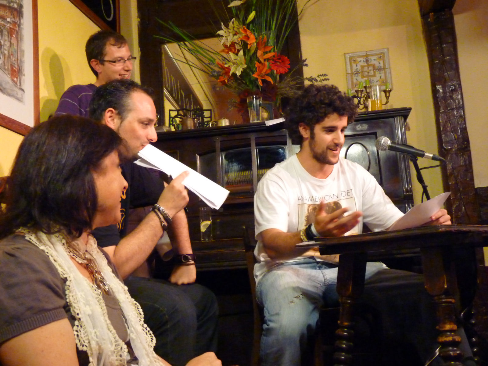 El pasado 1 de mayo a las 7 de la tarde en el Café Libertario, en pleno barrio de Chueca, se celebró el acto de presentación del libro en el que nuestro compañero Agustín participa como autor junto con otros dos poetas. Poetas, sí, porque se trata de un libro de poesía. Asistieron unas 40 personas que pudieron escuchar a los autores recitando sus poesías.