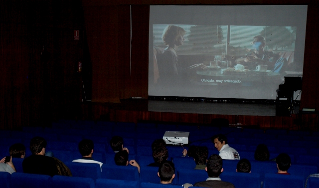 Casi semanalmente, ha ido proyectando, a lo largo del curso, diversas películas que han tenido un seguimiento muy aceptable. Habitualmente la noche de los jueves, como la del día de ayer, 27 de marzo, un nutrido grupo de colegiales se congregan en el Auditorio o la Sala de Video, para el visionado del film elegido.