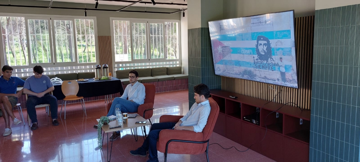 Por otro lado, y como cierre de esta actividad anual, tuvimos la suerte de contar con el testimonio de nuestro colegial Samuel Ramos, nativo de Cuba. Samuel nos habló de la situación de precariedad y pobreza que viven en el país, la situación política y la miseria en la que viven algunos cubamos. Pudimos analizar datos cruciales como el PIB, la inflación o la tasa de emigraciones. Los colegiales hablaron con su compañero del testimonio de salir de un país por la pobreza, de la visión que se tiene de España y de la situación de nuestro país frente a Cuba.