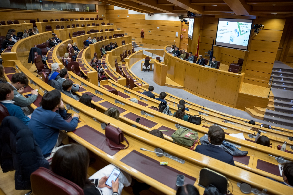 La XV edición del Torneo Nacional de Debate de Colegios Mayores, organizado por la Asociación de Colegios Mayores de Madrid, y con el patrocinio de la Fundación Ibercaja, desarrolló sus instancias finales en la Sala de Europa de la Cámara Alta. La pregunta del debate era una cuestión de actualidad: ¿Ha sido negativo el impacto de los influencers en las expectativas sociales y personales de los jóvenes? Tras una intensa competición y un altísimo nivel en cada ronda, nuestro equipo logró imponerse en la gran final al Colegio Mayor Loyola, un rival de enorme talento que ofreció un gran debate y con el que compartimos una final digna de esta prestigiosa competición.