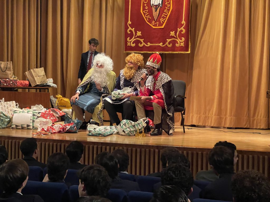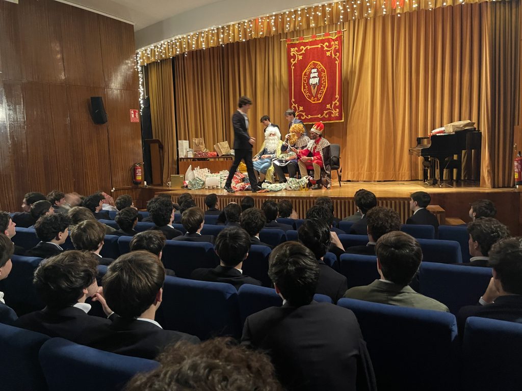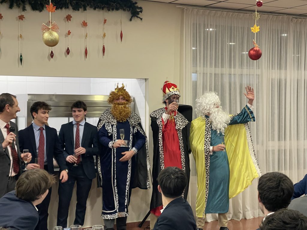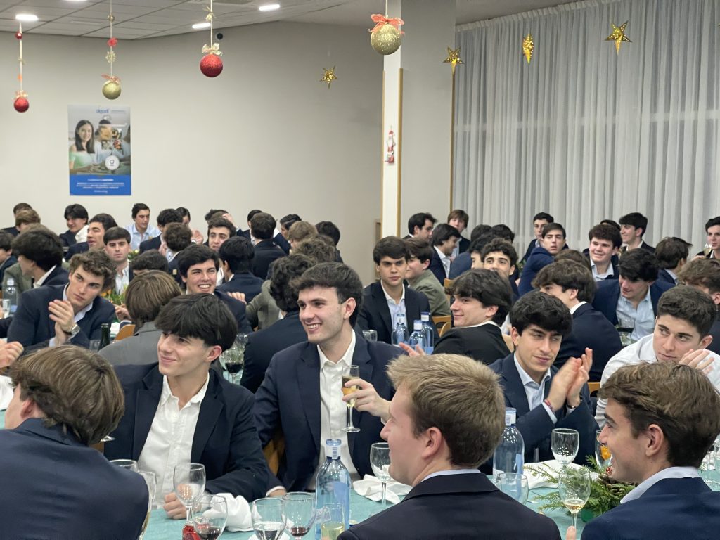 Después tuvo lugar la cena de Navidad, con un cuidado menú preparado por nuestro servicio de cocina y servido con dedicación por el personal. Los colegiales compartieron mesa por plantas, en un ambiente de alegría y fraternidad.