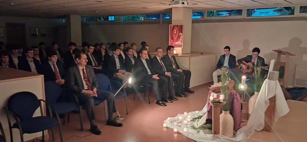 La tarde comenzó, como ya es tradición, con la foto de familia, en la que estuvieron presentes los colegiales, el equipo directivo y la comunidad claretiana, reflejo de la vida y la unidad de nuestro Mayor. A continuación, compartimos la oración de Adviento, poniendo en manos de Dios este tiempo de preparación y pidiéndole que su luz nos guíe hacia el nacimiento de Jesús.