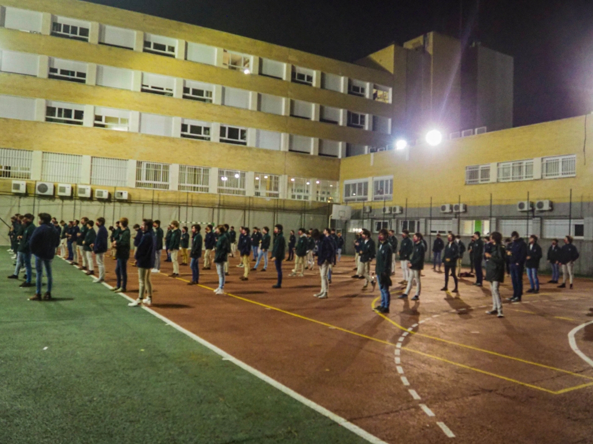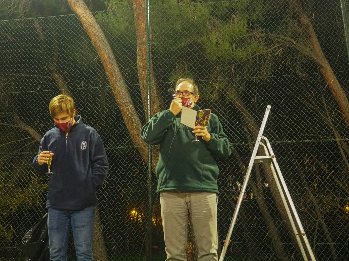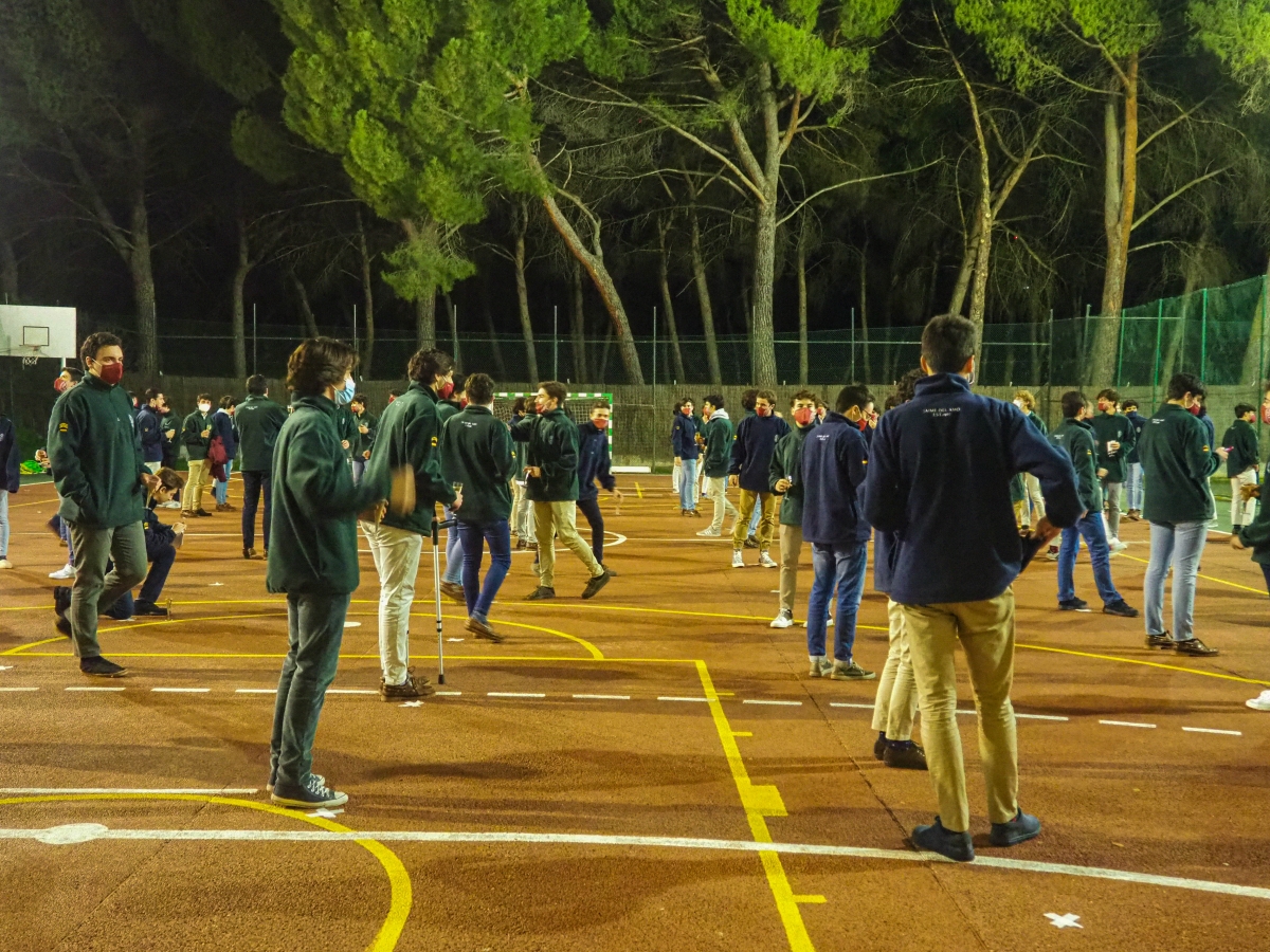 Posteriormente, los colegiales junto a todo el equipo directivo, se reunieron en las pistas deportivas para realizar el tradicional brindis navideño pero con una orgaización y disposición atípico por el contexto de Pandemia en el que nos encontramos. Buscando cumplir con todas las medidas de seguridad, cada colegial tuvo asignado una ubicación. La labor de coordinación del Consejo Colegial fue extraordinaria para que pudiésemos tener todos un encuentro sin riesgos.