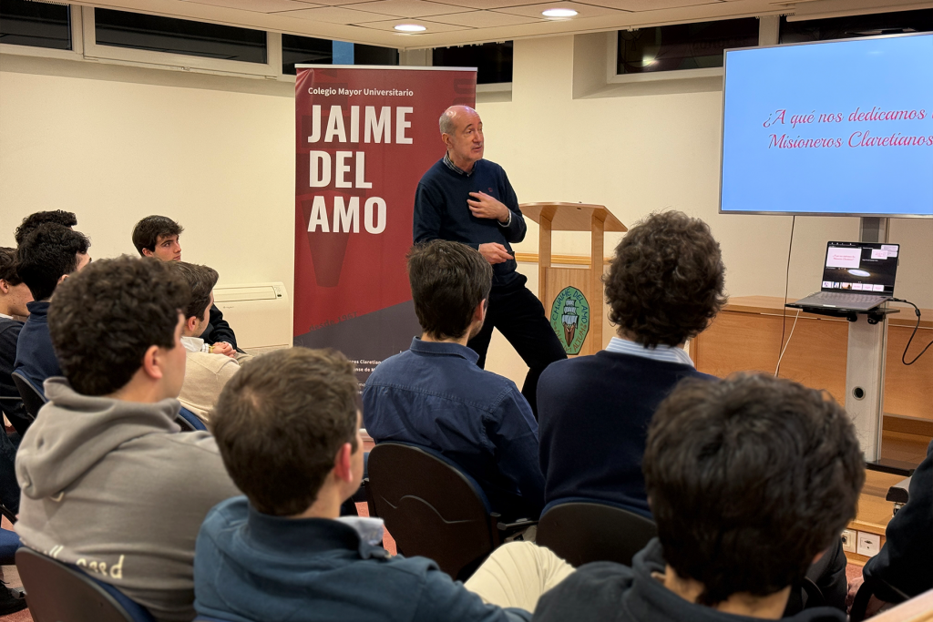 Hoy, lunes 9 de febrero, los colegiales del Colegio Mayor Jaime del Amo han participado en la charla compartida con el P. Miguel Ángel Velasco, CMF, superior de la comunidad de los Colegios Mayores.