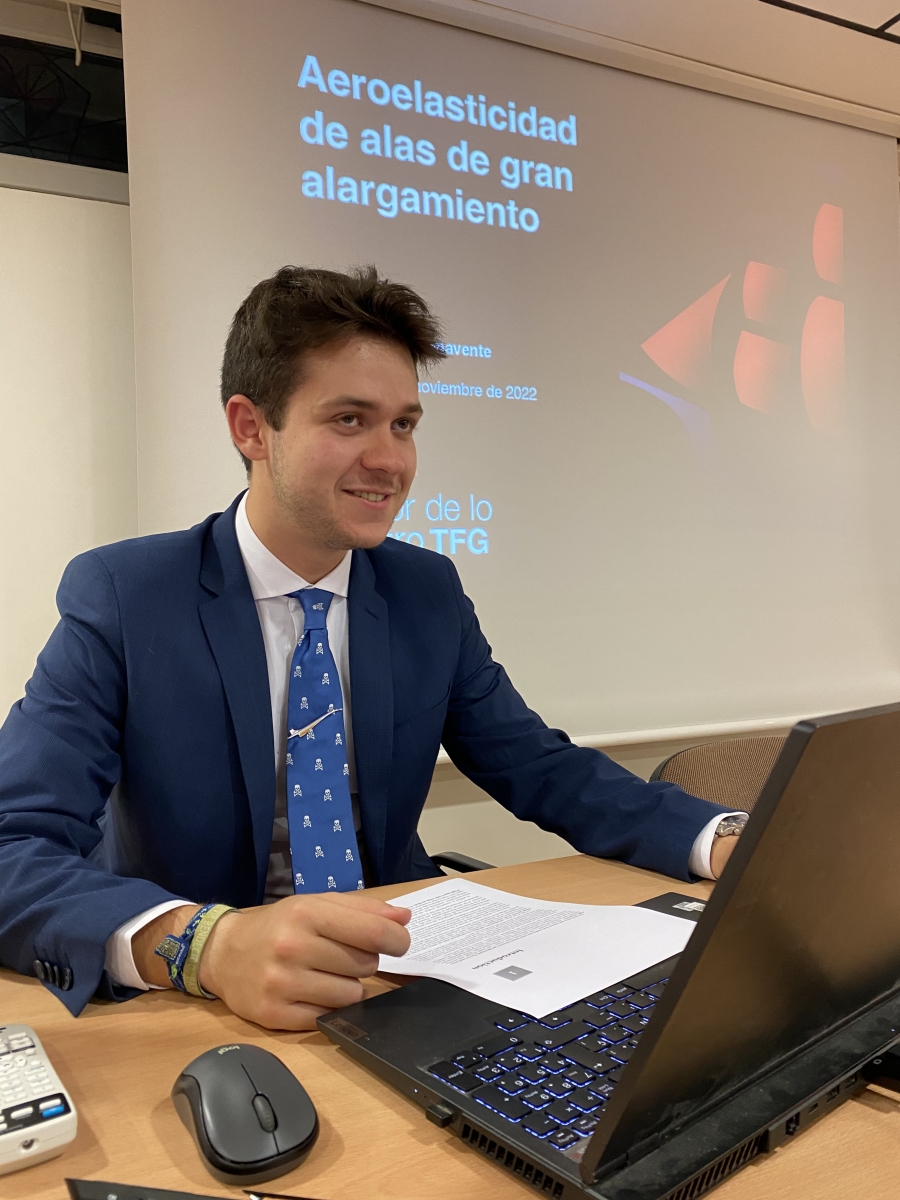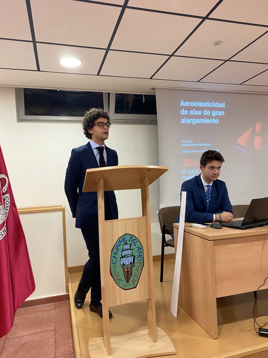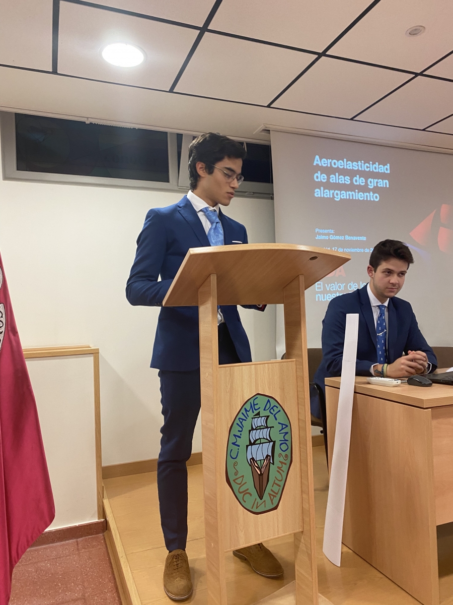 El pasado jueves 17 de noviembre de 2022 se inauguró el II Ciclo de Conferencias «El valor de lo nuestro – TFG», con la ponencia de D. Jaime Gómez Benavente, titulada “Aeroelasticidad de alas de gran alargamiento», tema que defendió como trabajo final de su grado, en Ingeniería Aeroespacial, en la Universidad Politécnica de Madrid.