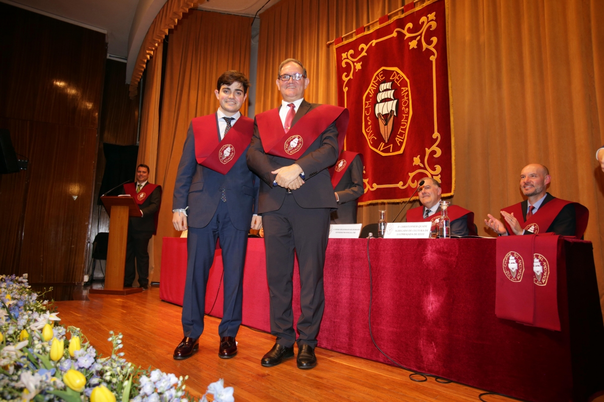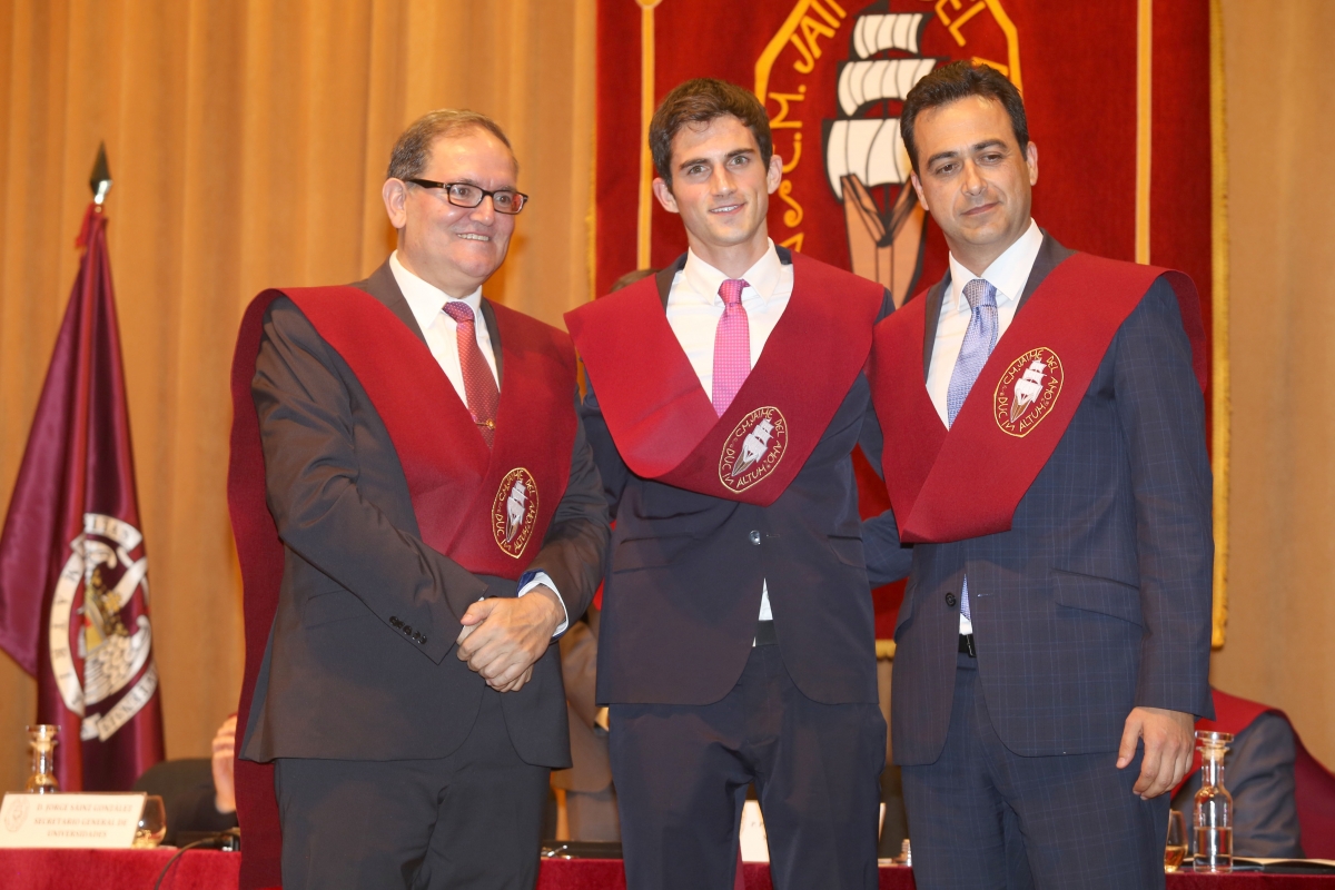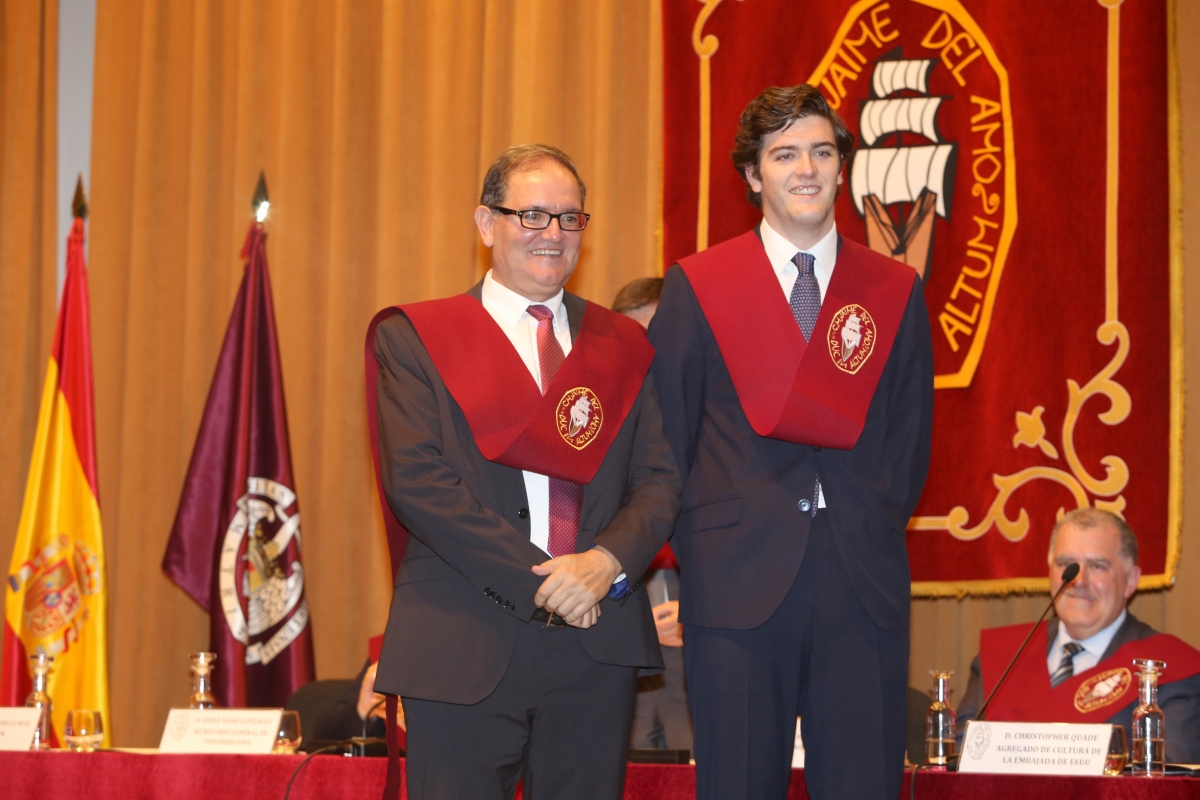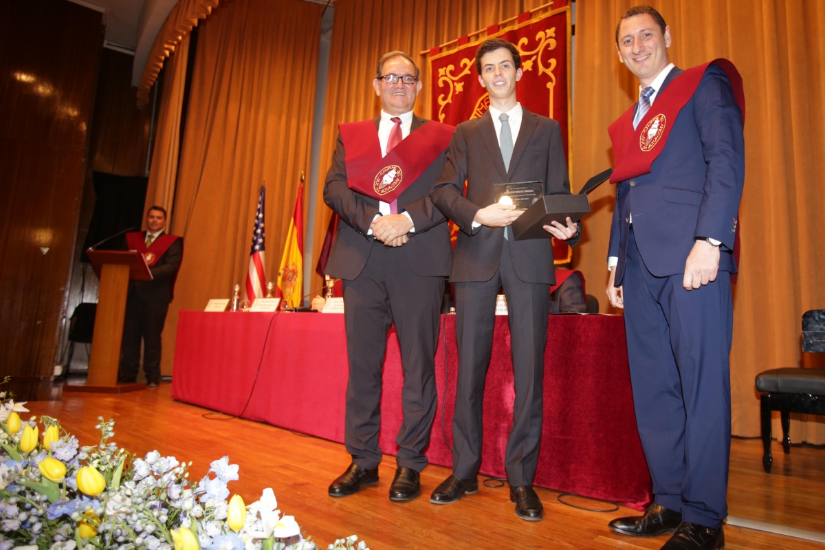 - D. Pedro García Canella (Derecho en la Universidad CEU San Pablo). Le acompañó al escenario su padre, D. José Pedro García Pérez, antiguo colegial becado de nuestro Mayor.