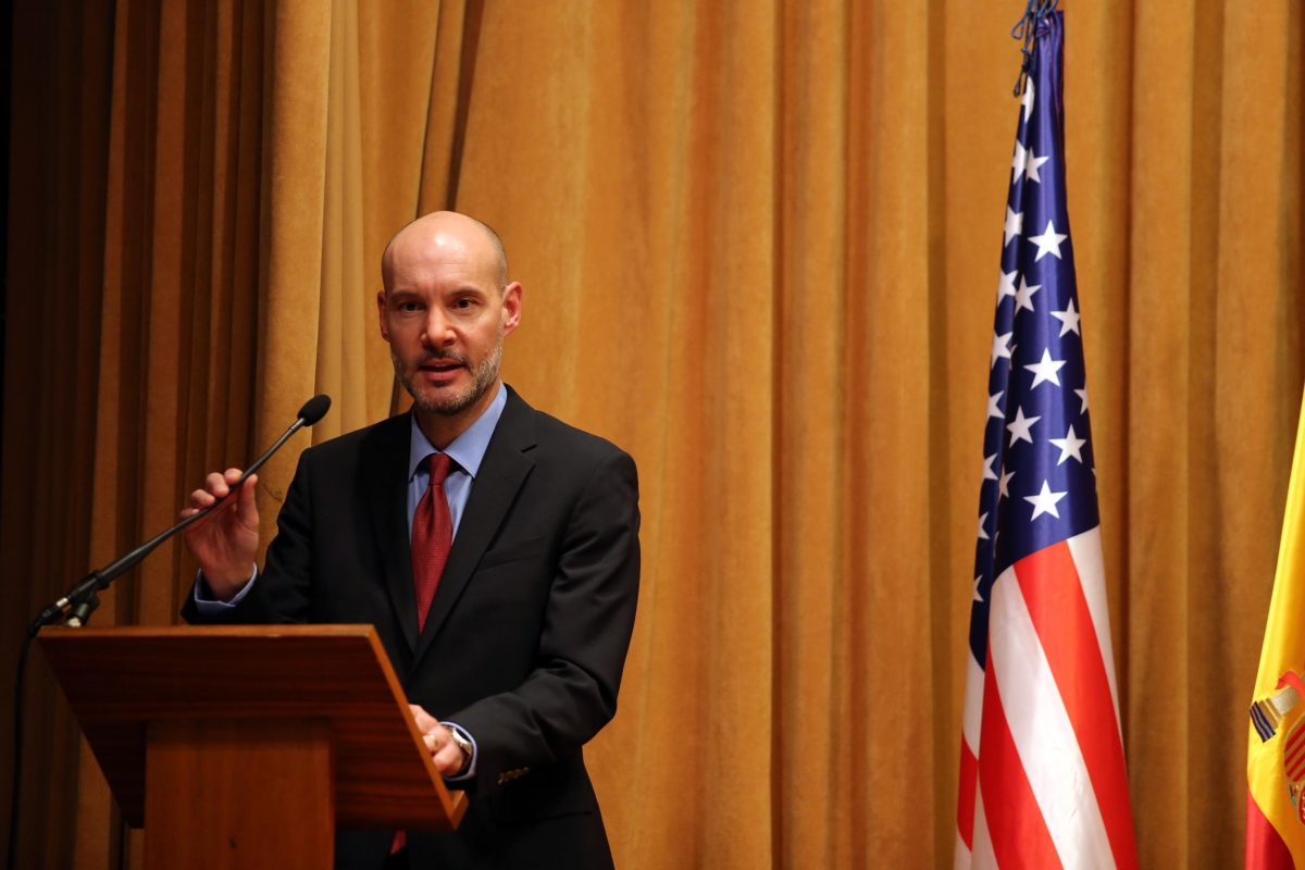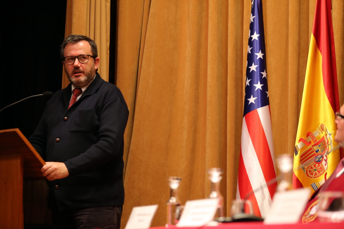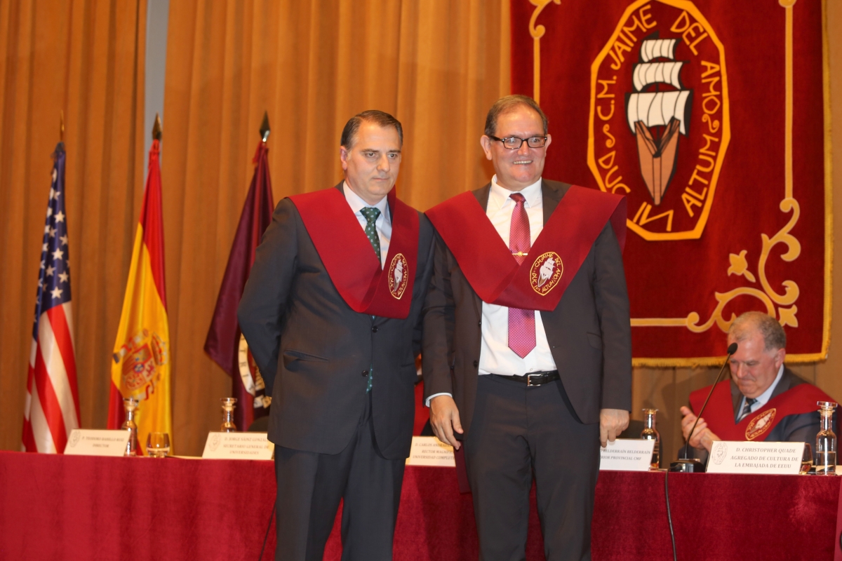 Posteriormente, D. Christopher Quade, Agregado de Cultura de la Embajada de Estados Unidos de América en Madrid, hizo su intervención, destacando el papel de colaboración que nuestro Mayor realizó durante las primeras décadas de existencia, con la Universidad de California, permitiendo el intercambio de estudiantes entre ambos países.