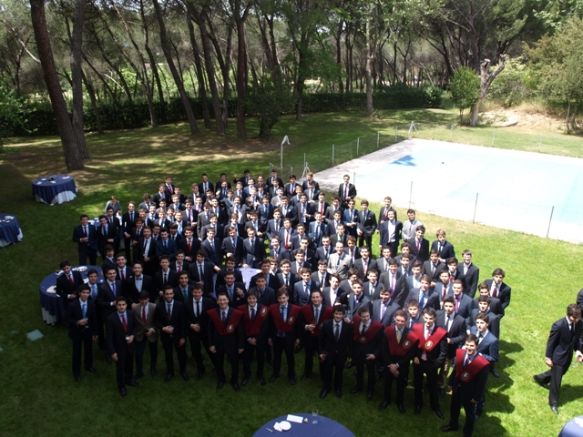 Finalizado el acto se entonó el Gaudeamus Igitur y finalmente todos los colegiales, junto al equipo directivo, salieron a la puerta del Mayor para la tradicional foto de fin de curso y disfrutar del ágape en los jardines del Colegio.