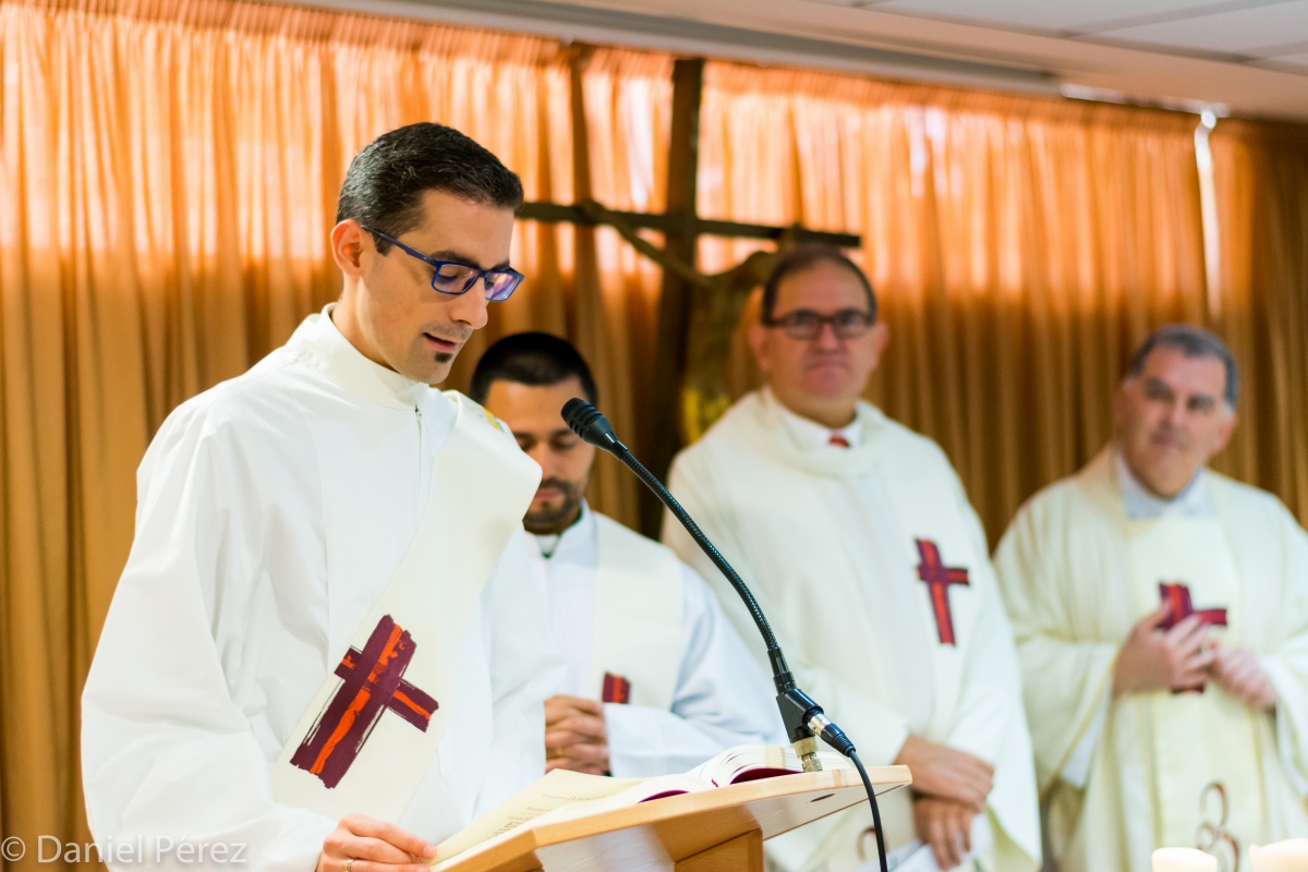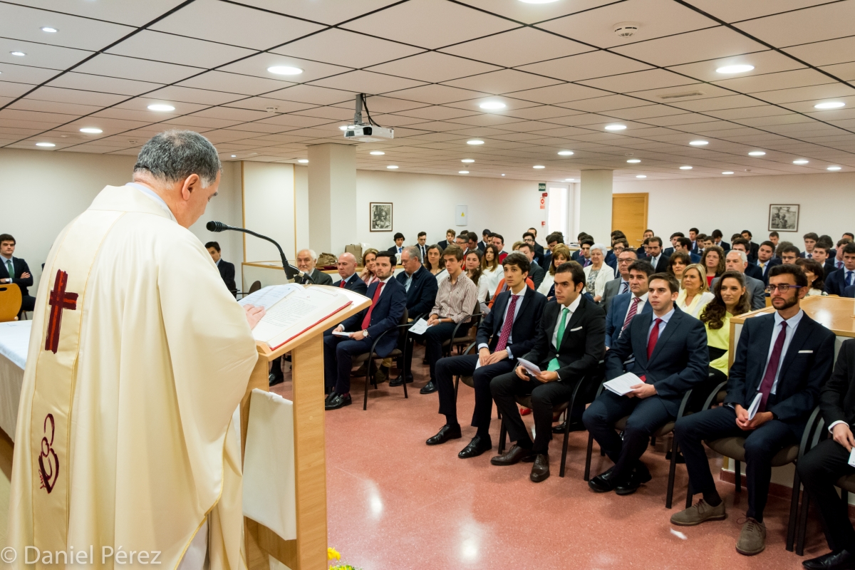 Se inició la jornada con la Eucaristía Colegial, en la que los colegiales que este día recibían la beca tuvieron la oportunidad de dirigirse a sus compañeros, familia y personal del colegio, para agradecer todo lo que han obtenido en esta etapa de su vida.La Misa de Acción de Gracias fue oficiada por el P. Pedro Belderrain, cmf, Superior Mayor de la Provincia de Santiago de los Misioneros Claretianos. Durante la misma los colegiales mayores Javier García Legorburu y Jaime Martínez Mateos fueron los encargados de representar a sus compañeros becados en las palabras de agradecimiento.