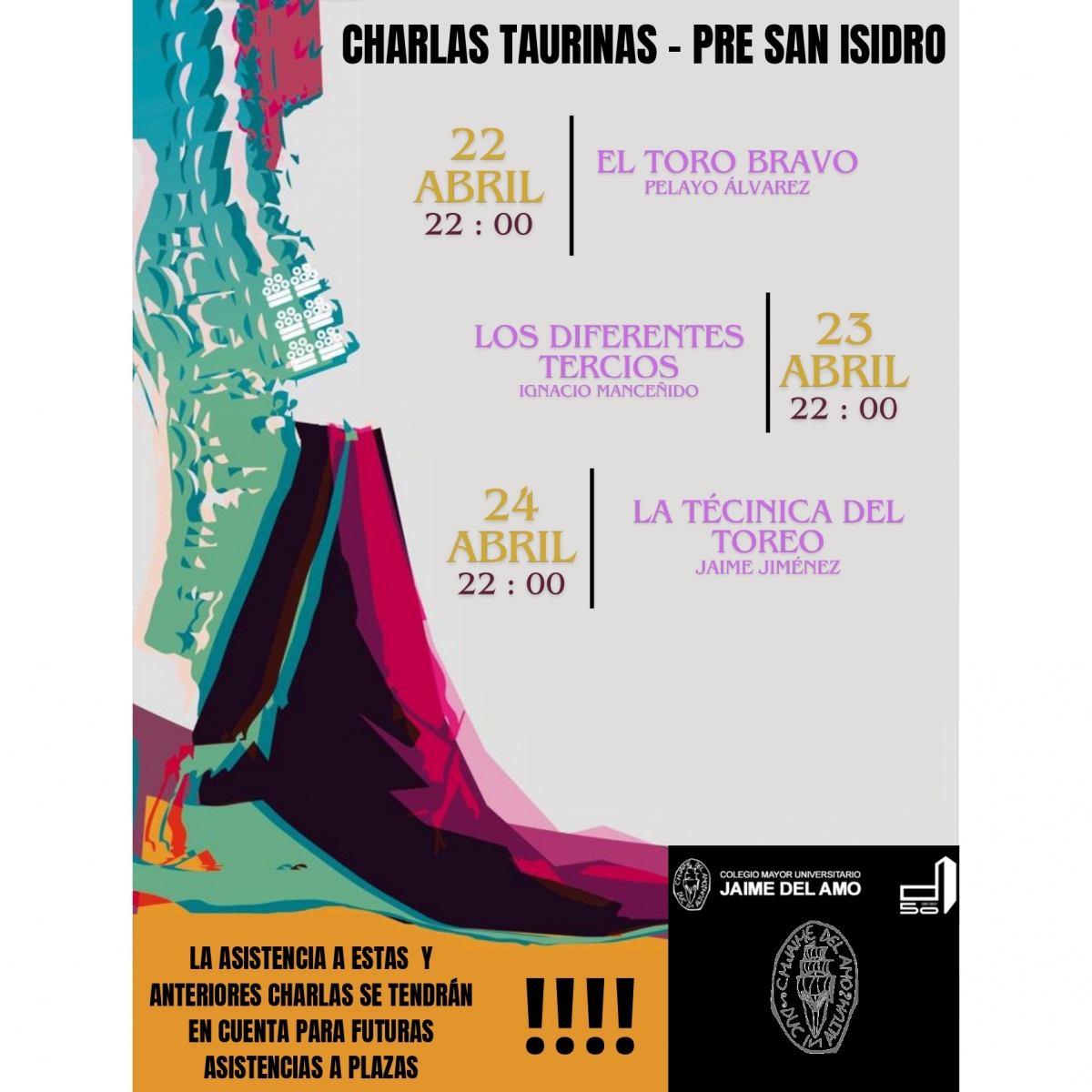 Antes de esta salida, y como preparación previa para aquellos que no conocen el mundo de la Tauromaquia, la Comisión que este año gestionó el colegial de segundo curso D. Gonzalo Serrano Serrano, organizó un ciclo de charlas sobre diferentes aspectos de la lidia del toro.