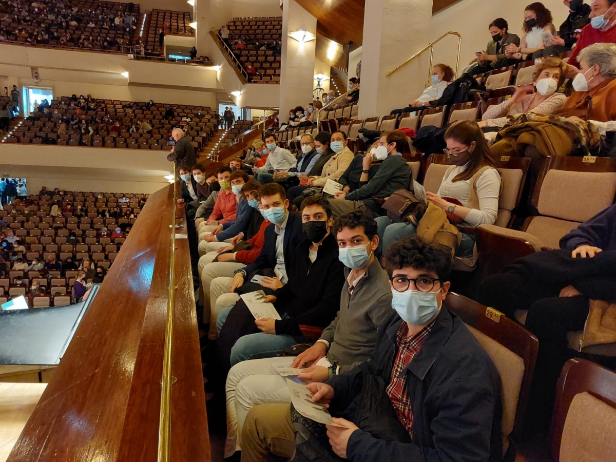 Desde nuestro Colegio Mayor quisimos estar presente de manera significativa y organizamos una numerosa «comitiva jaimita» integrada por el Director y los colegiales decanos y los miembros del Consejo Colegial, también por los colegiales interesados en la música clásica que fueron invitados desde nuestra Comisión de Música Clásica, además de integrar el grupo miembros del personal del Jaime del Amo y familiares de los mismos.