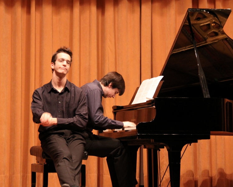 El pasado jueves por la noche unos pocos en el Colegio tuvimos el privilegio de poder asistir al pequeño concierto que nos ofrecieron nuestros compañeros Mario y Diego. Como ya nos tienen acostumbrados, hicieron un gran alarde de su virtuosismo al piano. Pero nos sorprendieron a propios y extraños con un final teatralizado a cuatro manos que hizo las delicias de los que allí nos dimos cita para disfrutar de la buena música. Enhorabuena a los dos y esperemos que cosechéis triunfos en vuestro próximo concierto aquí, en el Jaime del Amo.