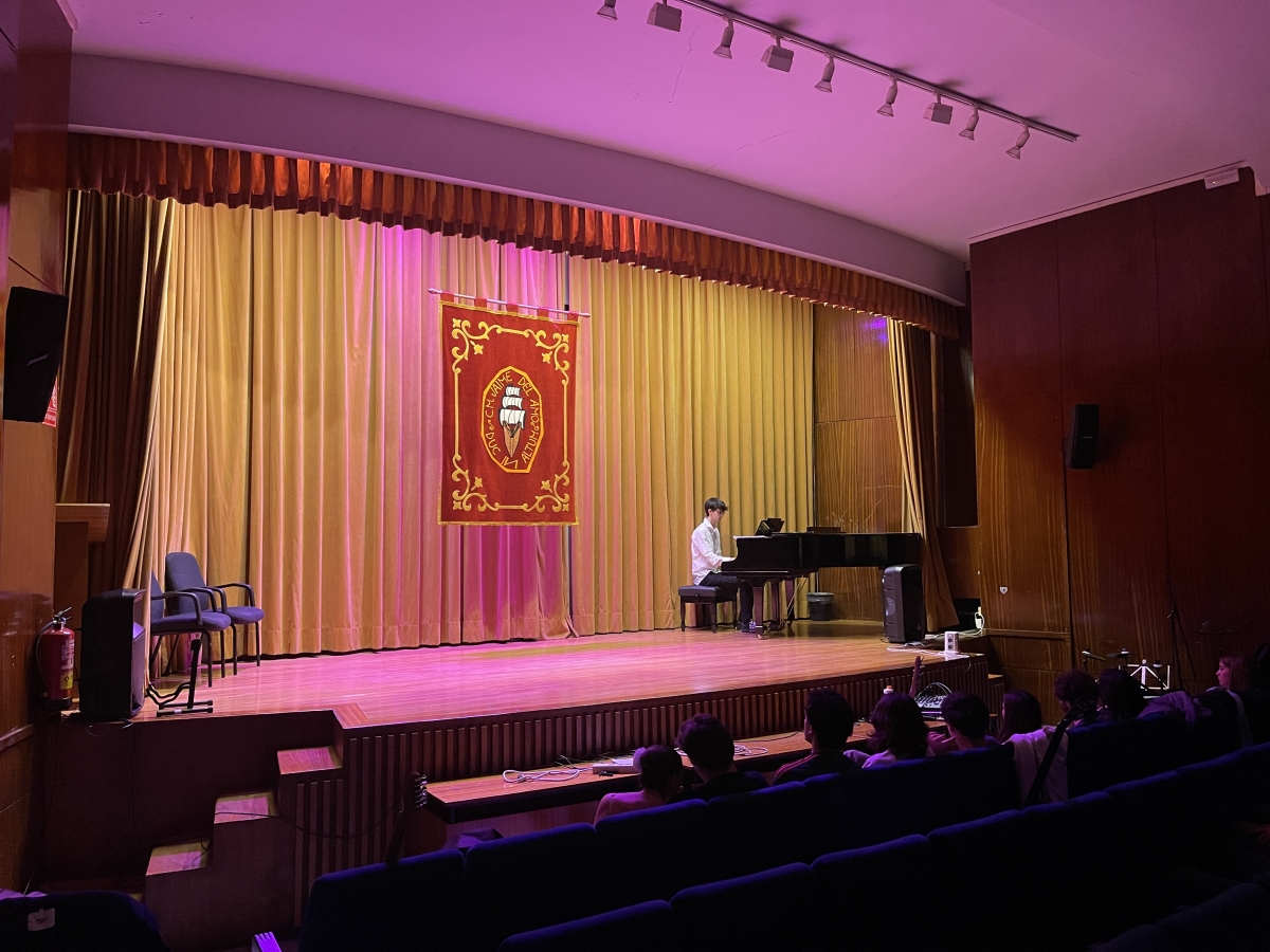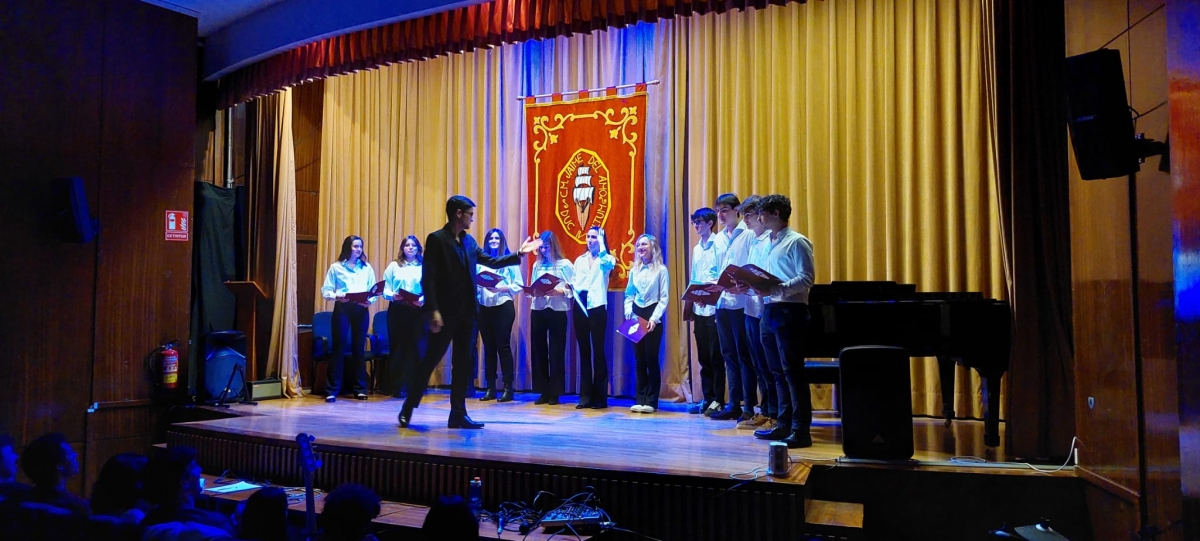 El programa fue variado, incluyendo el talento de nuestro colegial Manuel Gutiérrez al piano. No podían faltar las voces de nuestro Coro Altum, dirigido un curso mas por el subdirector del Mayor, D. Enrique Alonso.