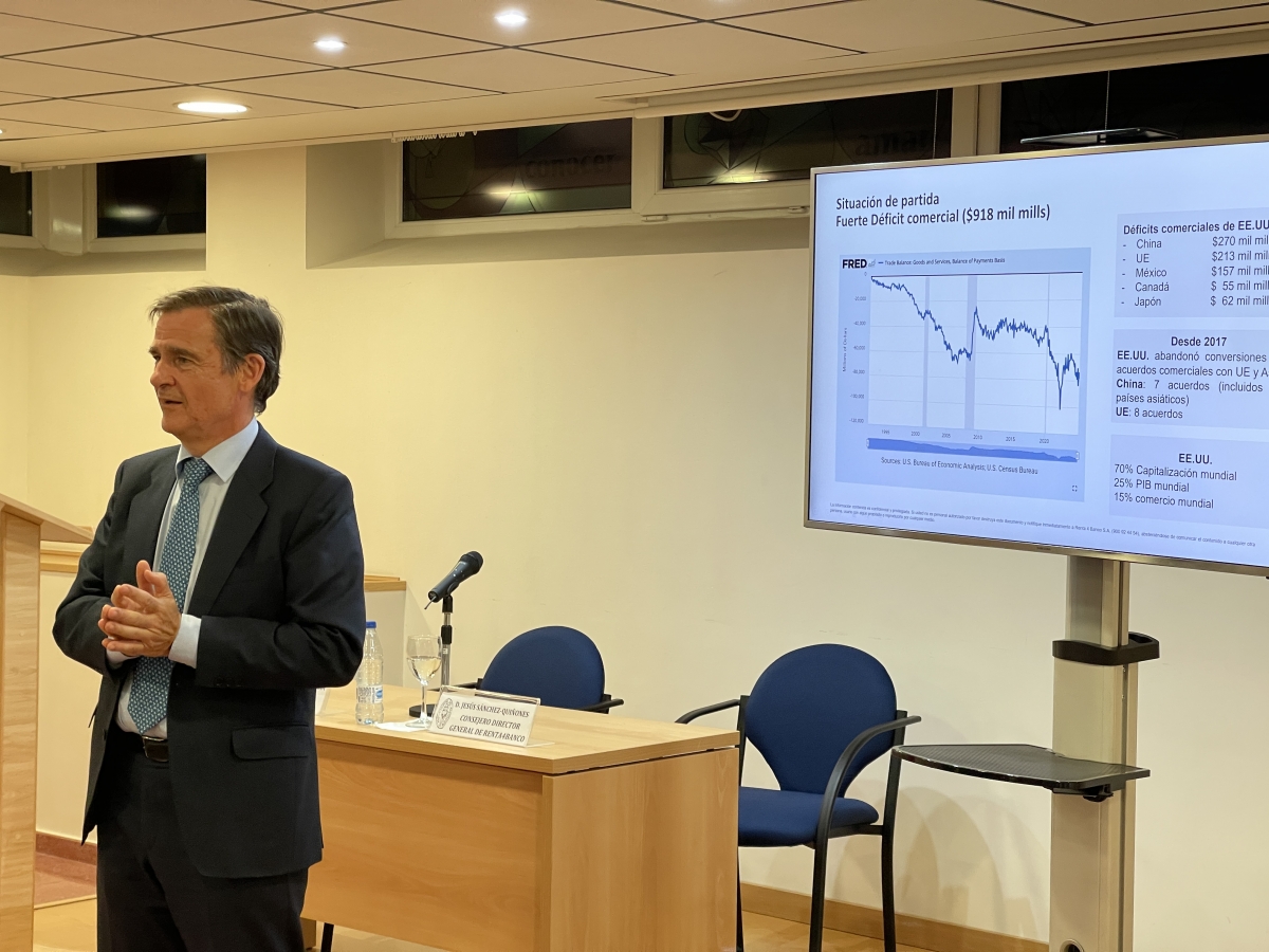 D. Jesús nos ofreció su visión acerca de los cambios que ya se están observando en el panorama económico y financiero actual. Durante la charla se abordaron temas clave como el impacto en los mercados, las relaciones comerciales internacionales y las posibles consecuencias para Europa y España.