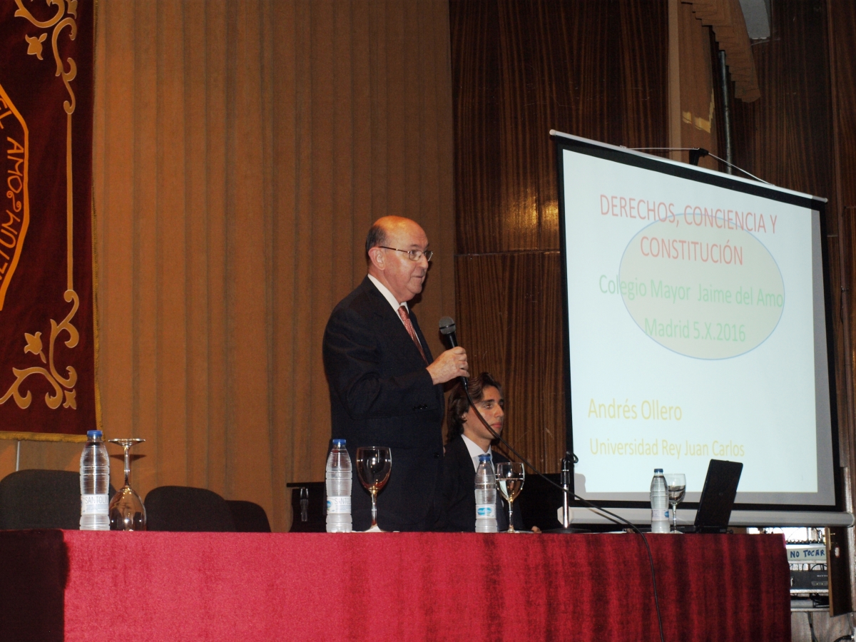 La primera conferencia que se organizó desde el Área de Estudios el pasado miércoles 5 de octubre fue la de D. Andrés Olleros Tassara, Magistrado del Tribunal Constitucional y Catedrático de Filosofía del Derecho, quien realizó una didáctica y cercana ponencia bajo el título «Derecho, Conciencia y Constitución».