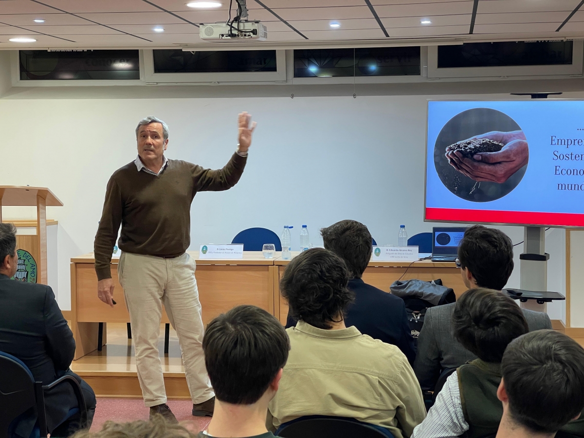 D. Jaime nos impartió una conferencia sobre los desafíos y oportunidades del emprendimiento en el mundo rural. En la charla se abordaron cuestiones clave, como la sostenibilidad en la producción, la viabilidad económica de los proyectos en zonas rurales y la importancia de la innovación para revitalizar el sector.