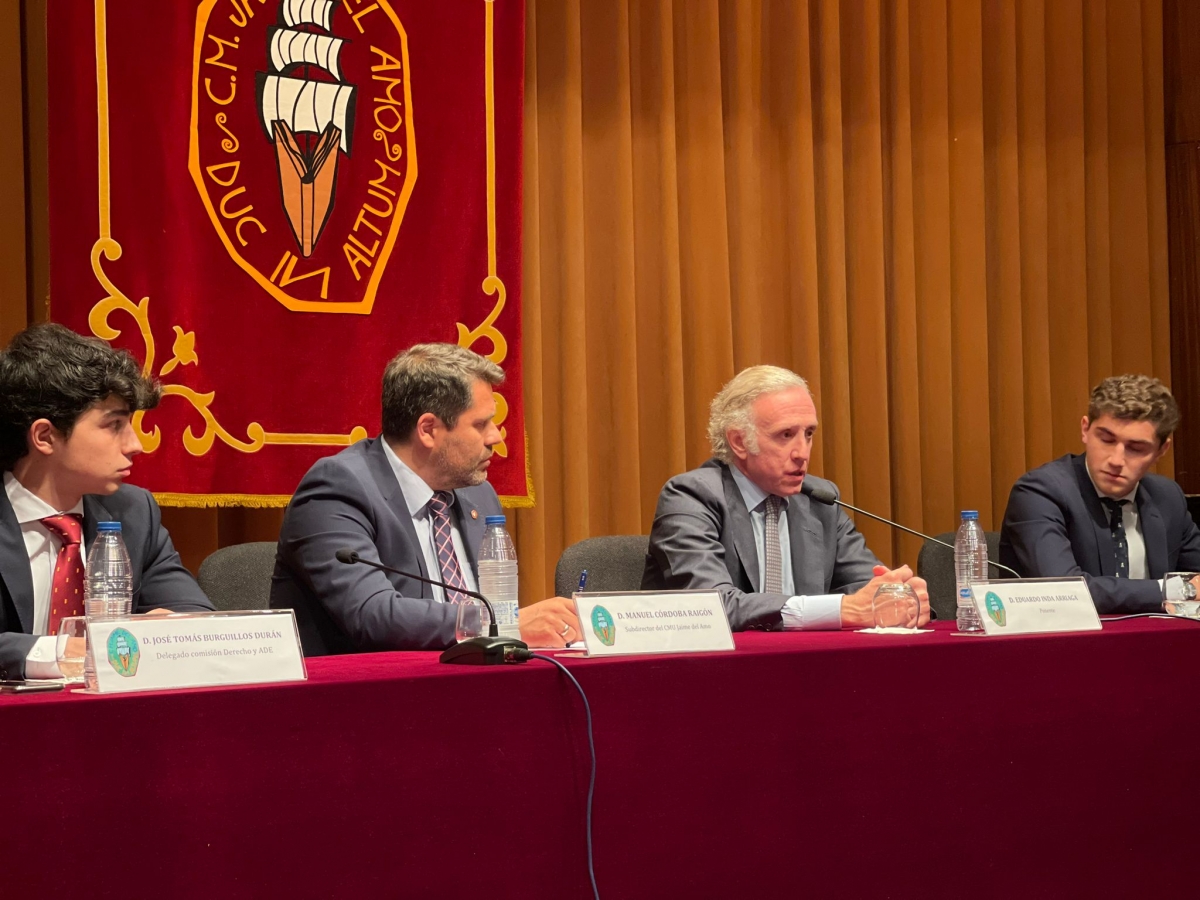 Nuestro Delegado de Estudios, Ángel Lorenzo Mingorance, apostó por esta conferencia en el marco de la Comisión de Derecho y Ade, que dirige José Tomás Burguillos Durán. Y D. Eduardo Inda cumplió con las expecatativas. Por un lado ofreció un análisis de la situación política actual y venidera, en un día en el que se resolvió la moción de censura al actual gobierno; y por otro, transmitió su carácter emprendedor, pues con gran éxito, ha conseguido abrirse un hueco en un sector tan competitivo como el de los medios de comunicación.