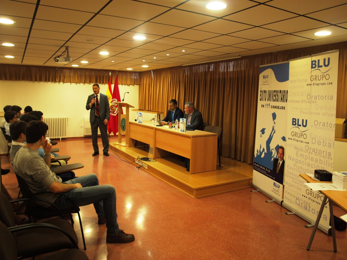 El pasado jueves 20 de abril el Colegio Mayor Jaime del Amo tuvo el privilegio de recibir la visita del Dr. Alan Cirlin, profesor de teoría de la comunicación y debate en la St. Mary`s University de San Antonio (Texas-USA), quien nos vino a hablar sobre «Cómo aprobar los exámenes con menos esfuerzo», en el marco de la presentación de su último libro titulado: » Éxito Universitario en 119 consejos», y editado por BLU Editorial.