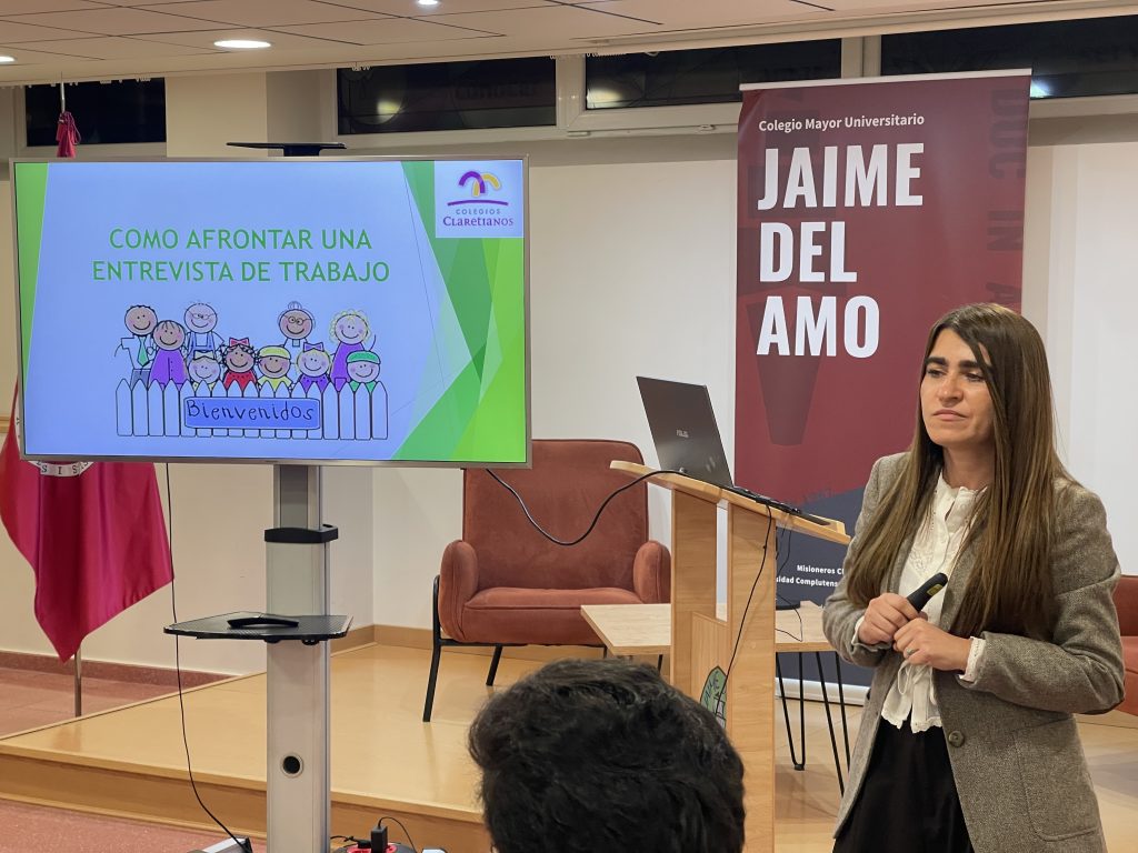Por último, la tercera sesión fue impartida por Mónica Martínez, experta en Recursos Humanos y miembro del equipo de la entidad titular de los claretianos en España. En esta sesión se trabajó de forma directa y aplicada cómo afrontar una entrevista de trabajo, desde los aspectos técnicos hasta los formales: comunicación, lenguaje, actitud, preparación previa y respuesta a las preguntas más habituales en los procesos de selección.