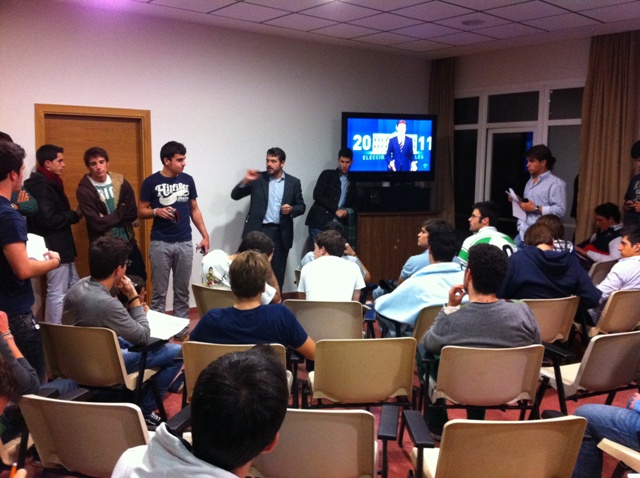 El pasado lunes 7 de noviembre se celebró el esperadísimo debate electoral entre los dos candidatos aspirantes al gobierno en las próximas elecciones generales. El Jaime del Amo no fue ajeno a este acontecimiento. La Comisión de Oratoria y Debate invitó a todos sus compañeros a presenciar el debate televisivo desde otro punto de vista. Además el profesor Guillermo Sánchez y su equipo de expertos en comunicación hizo un análisis finalizado el mismo donde destacaron los aspectos formales y de contenido de ambos candidatos. Se puede leer el resumen de dicho análisis en su blog.