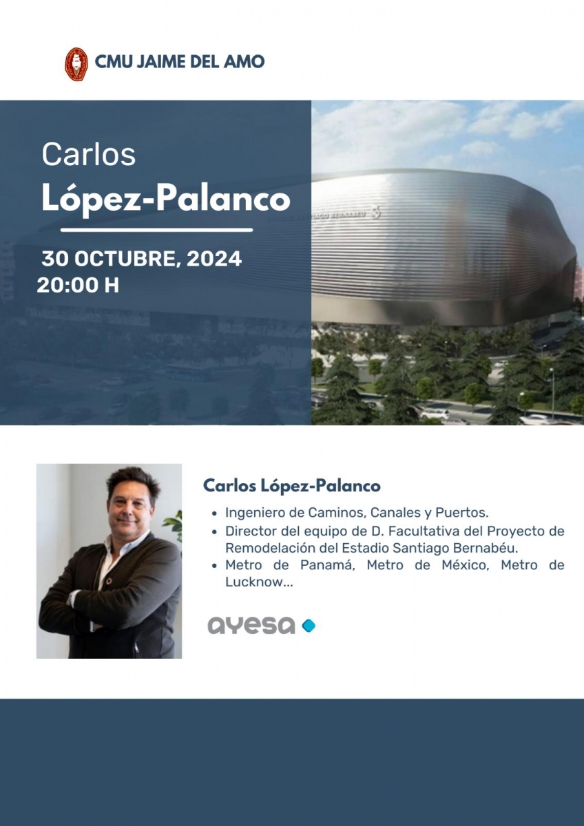 El pasado miércoles 30 de octubre tuvimos la oportunidad de recibir la visita de D. Carlos López-Polanco, antiguo colegial del Jaime del Amo y uno de los ingenieros responsables de la impresionante reforma del Estadio Santiago Bernabéu. Durante la charla se abordaron en profundidad los aspectos clave de esta transformación, destacando cómo este estadio se ha convertido en un espacio icónico y multifuncional, único en el mundo del deporte.