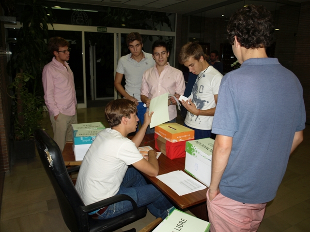 Ayer el Jaime del Amo celebró sus Elecciones Colegiales que decidieron los delegados de las distintas actividades que se desarrollarán a lo largo del curso 2013-2014. La mesa electoral se cerró a las 22:00 y se pasó al despacho de Dirección para el recuento. Han sido unas elecciones muy participativas y reñidas. La fiscalización de los votos fue realizada, como indica la tradición, por el colegial más joven, D. Yago Rodríguez Nogueira, el de mayor edad, D. Jorge Raga, junto a los Decanos y Subdirectores.