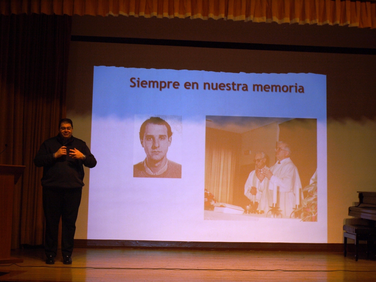 Una de las particularidades de este encuentro fue que contamos con la presencia del padre Carlos Martínez Oliveras, antiguo Director del Mayor, quien lo dirigió desde el año 2003 a 2005. Con él quisimos dar la voz a los directores de esa época ausentes (Padres Javier Serrano, José vegas y Valentín Santos). El padre Carlos se encargó también de la oración y del recuerdo de los padres claretianos Pita y Valentín (de mucha relación con los colegiales y ya fallecidos) , y del colegial Jorge Sánchez (fallecido en accidente de tráfico)