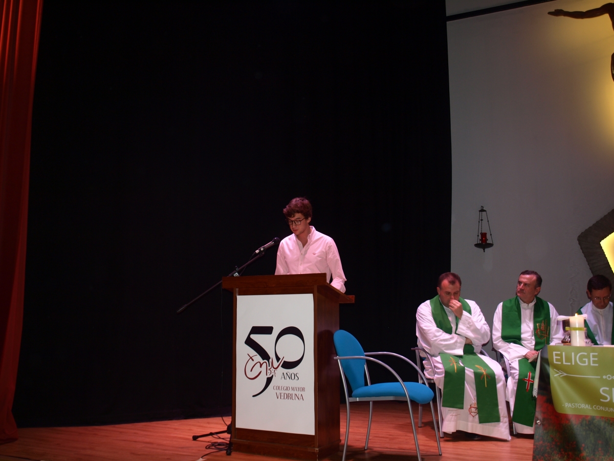 La asistencia de nuestros colegiales fue notable, participando activamente en la Eucaristía y disfrutando de la oportunidad de celebrar junto con colegiales de otros Mayores. La Eucaristía fue concelebrada por 9 sacerdotes, entre los que destacamos la presidencia del Claretiano Luis Manuel Suárez CMF y la presencia de nuestro padre provincial Pedro Belderráin CMF.