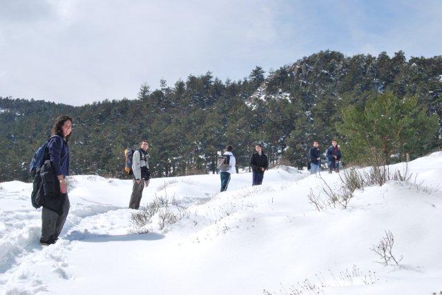 Hace un frío de mil demonios. El viernes pasado 3.000 coches y 400 camiones se quedaron atascados en la A-6. Pero nada de eso ha logrado detener a los 5 colegiales del Jaime que se han animado a utilizar este domingo para subir a Abantos, el monte que está a la espalda de San Lorenzo del Escorial. Les acompañaba por una vez una colegiala del C. M. Roncalli, que esperemos que anime a sus compañeras a participar más a menudo en estas salidas.