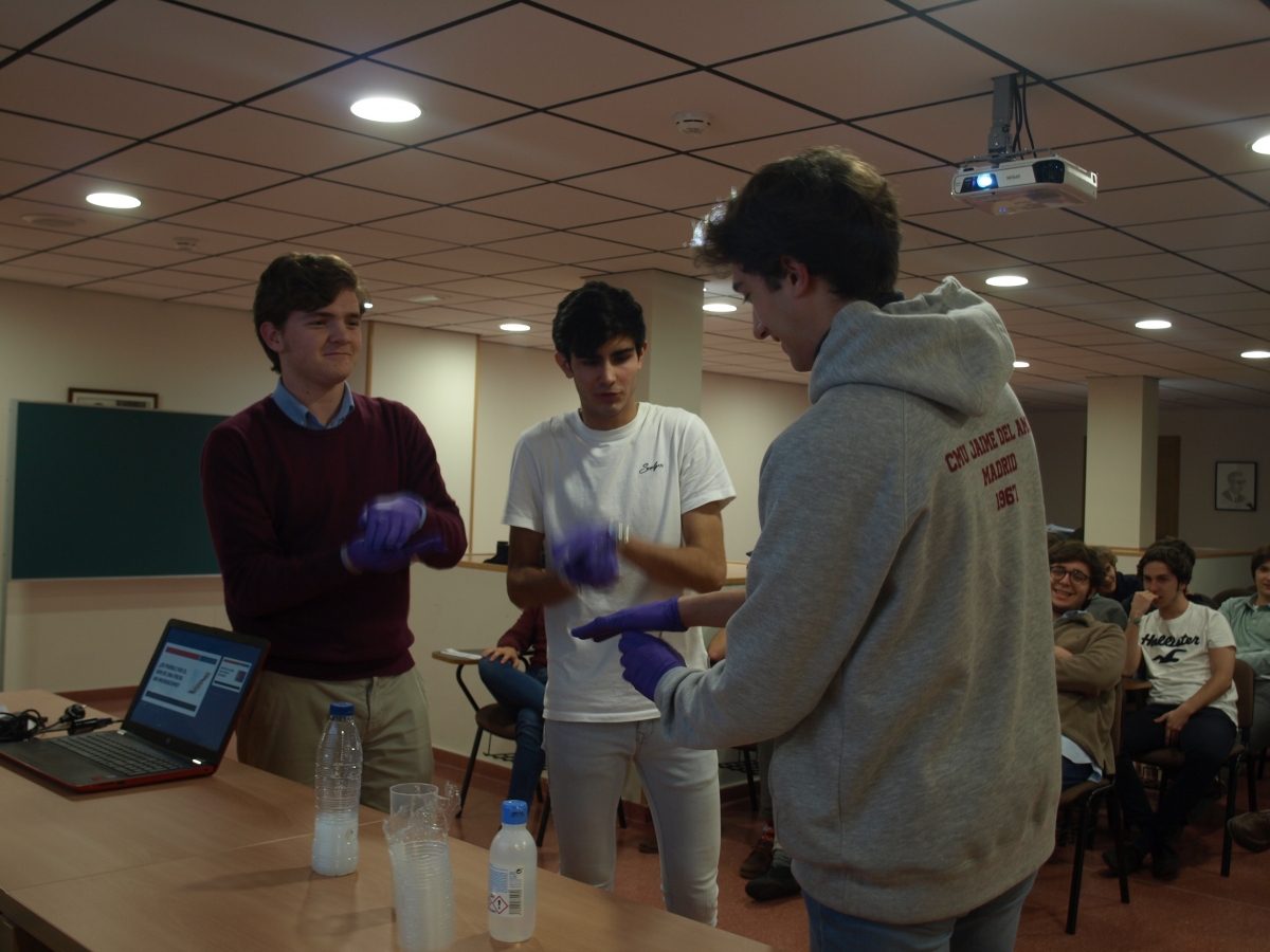 El miércoles 4 de Diciembre, la Comisión de Ciencias de la Salud, que este curso dirige Luis Javier Bermúdez López, trajo una actividad innovadora, que consistía en la realización de experimentos sobre temas biológicos. Previamente a su realización, el delegado de la Comisión explicó los fundamentos teóricos adaptados a un nivel general de la materia, a fin de que todos los colegiales asistentes, de diferentes áreas del saber, pudieran entender la explicación.