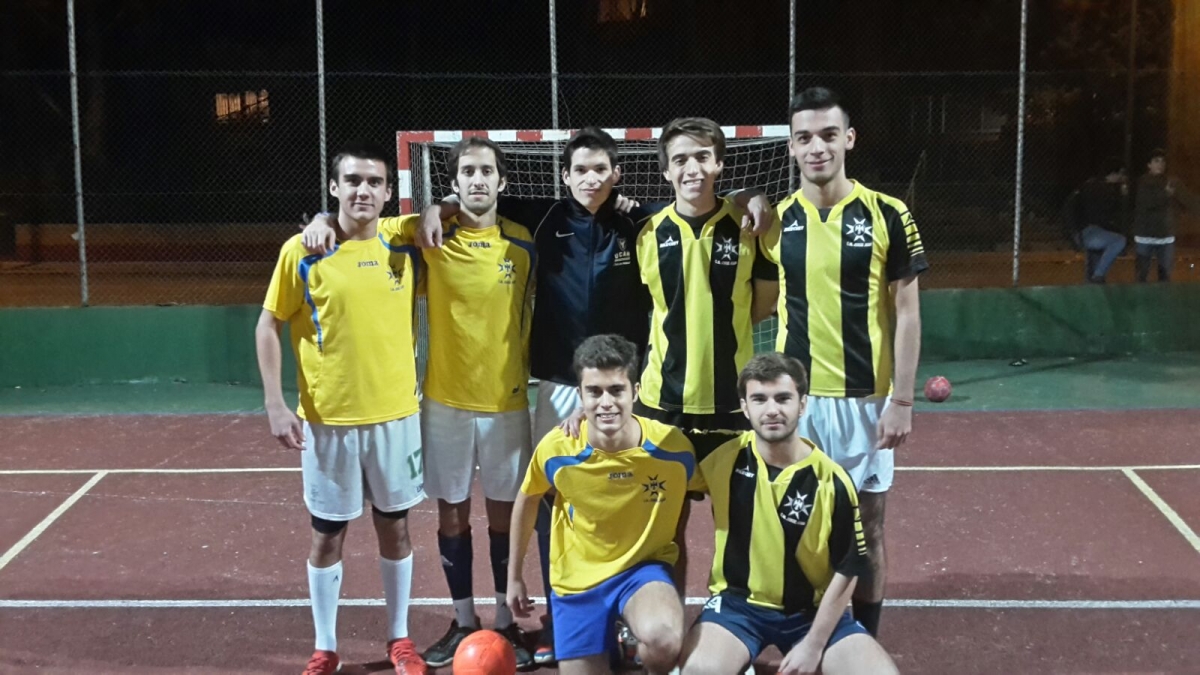 La noche del martes 19 de diciembre disputamos el último partido de grupo correspondiente a la fase clasificatoria de nuestro equipo de Fútbol Sala «A», que este año capitanéa el colegial Pablo Rodríguez Fernández, en el Torneo de la Asociación de Actividades Conjuntas para Colegios Mayores de Madrid.
