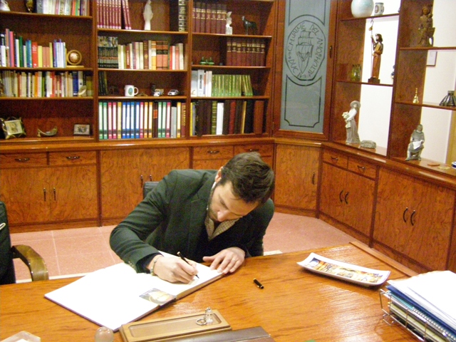 Posteriormente, el Sr. Cebrían, nos regaló su dedicación y firma en el Libro de Honor del Mayor. Su deseo es haber contagiado en los colegiales algo de su espíritu emprendedor.