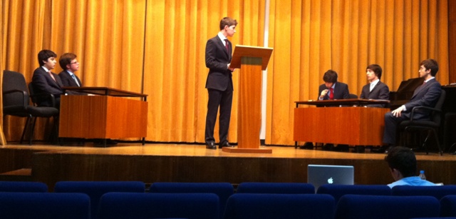 La tarde de ayer fue activa para la Comisión de Debate. Se celebraba el Primer Torneo Interno destinado a los colegiales que asistieron al Curso de Oratoria y Debate. A los seis equipos que surgieron del curso se le unieron otros dos neófitos que no tenían experiencia en estas lides. El resultado fue muy positivo. Se disputo la final entre el equipo de Manuel García, Ignacio Alarcón y Andrés López contra el equipo de Gabriel Fernández, Álvaro Corno e Ignacio Sanz, resultando vencedores los primeros. Enhorabuena a todos por el trabajo y la valentía demostrada.