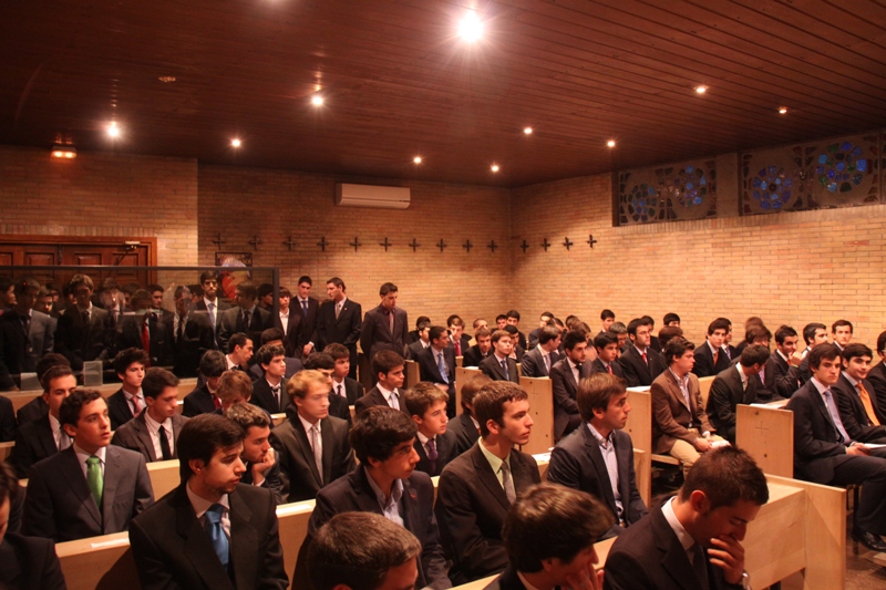 El acto comenzó con una celebración eucarística en la capilla con una gran participación por parte de los colegiales. A continuación nos reunimos en el Salón de Actos para la lección inaugural. Para tal evento tuvimos el privilegio de contar con José María Luengo Rodríguez, catedrático de Biología en la Universidad de León y padre de tres compañeros que ya han pasado por el Colegio Mayor. Con su amena conferencia nos mostró otra perspectiva de lo que supone salir de casa e iniciar una nueva etapa universitaria: la perspectiva de los padres. Tras el cántico del «Gaudeamos Igitur» se sirvió un vino español en el comedor. Para ver más fotos pinchar aquí.