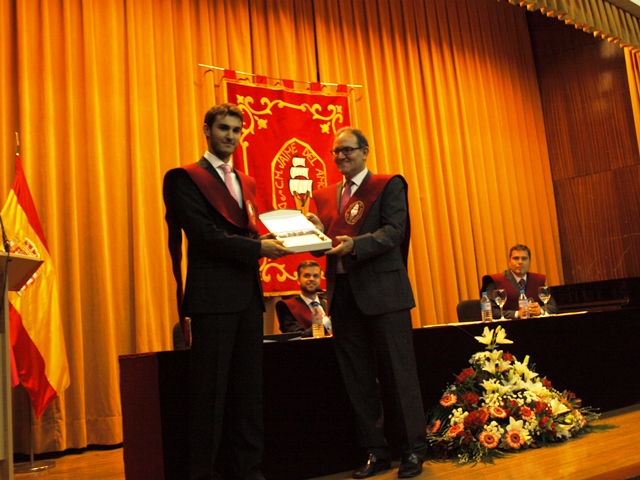 Por último se leyó la resolución extraordinaria del Consejo de Dirección donde se estipulaba reconocer con una placa recordatoria a los colegiales que habían concluído su carrera y continúan residiendo hoy en el Colegio. Ellos son los colegiales de 5to año D. Israel Onrubia Moñux y D. Carlos Villamil Fernández, por la obtencion del grado en Ingeniería Civil y Territorial el primero, y por Ingeniería Aeroespacial el segundo.