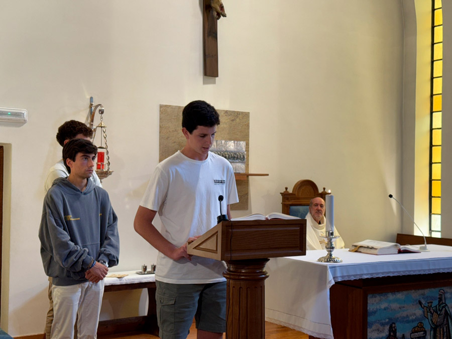 La promoción de sesenta nuevos colegiales participó en dos turnos, acompañados por el P. Miguel Ángel Velasco, CMF, Superior de la comunidad claretiana de los Colegios Mayores de Madrid, junto a nuestro responsable de pastoral y los decanos del Equipo Directivo del Colegio.