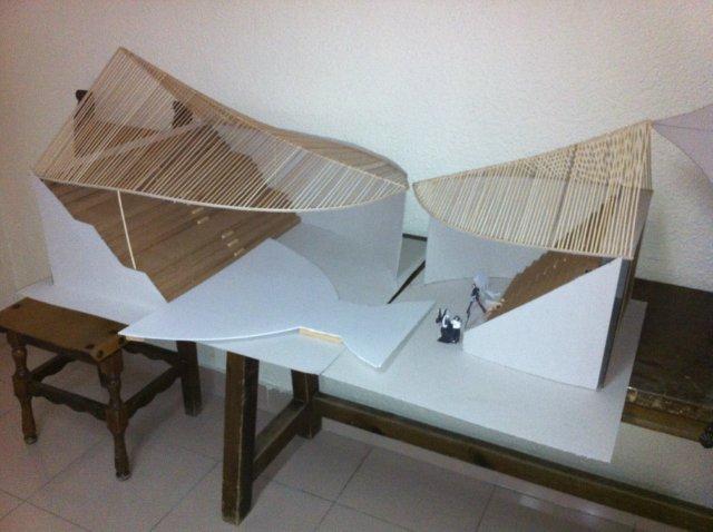 Cuando se trabaja, se ve. Sobre todo el trabajo de los arquitectos que con sus maquetas llena hasta los rincones perdidos del Colegio. Esta foto es un buen ejemplo. Es de esperar que tantas buenas ideas se puedan convertir algún día en edificios que embellezcan nuestras ciudades. ¡Enhorabuena!