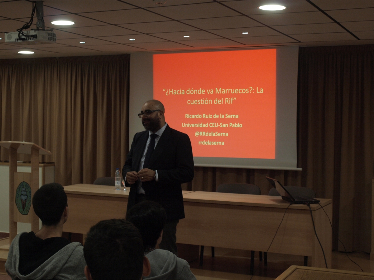 Por tercer año consecutivo, tuvimos con nosotros al profesor Ricardo Ruiz de la Serna, que impartió una conferencia sobre el mundo islámico. En esta ocasión el tema abordado fue Marruecos y las revueltas en el Rif. En su habitual estilo cercano y pedagógico, el profesor también motivó y contesto a un intenso turno de preguntas por parte de los asistentes.