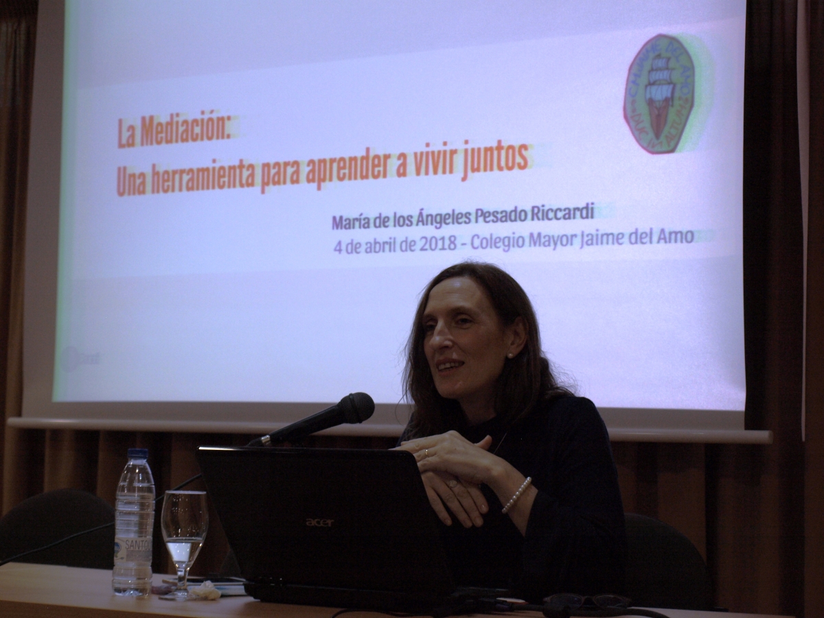 El pasado miércoles 4 de abril nuestro Colegio Mayor tuvo el privilegio de contar con la visita de Da. María de los Ángeles Pesado Riccardi, abogada argentina, licenciada en Gestión Educativa, Secretaria de Relaciones Institucionales de la Defensoría General de Lomas de Zamora (Buenos Aires), y Miembro de la Unión de Magistrados de Lomas de Zamora y de la Asociación Latinoamericana de Magistrados, Funcionarios y Operadores de Niñez, Adolescencia y Familia.