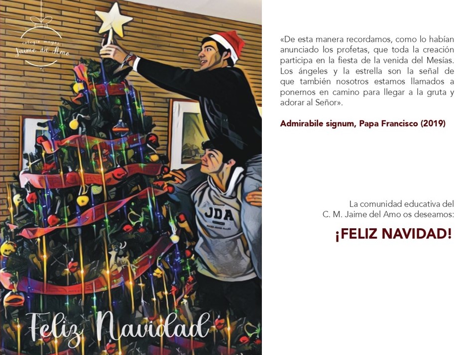 Esta foto de familia en Navidad, también acompaña la felicitación que se envía a las familias, junto con la tradicional postal navideña, que este año recogía un bonito momento vivido durante las labores de los colegiales para adornar el Mayor en estos días.
