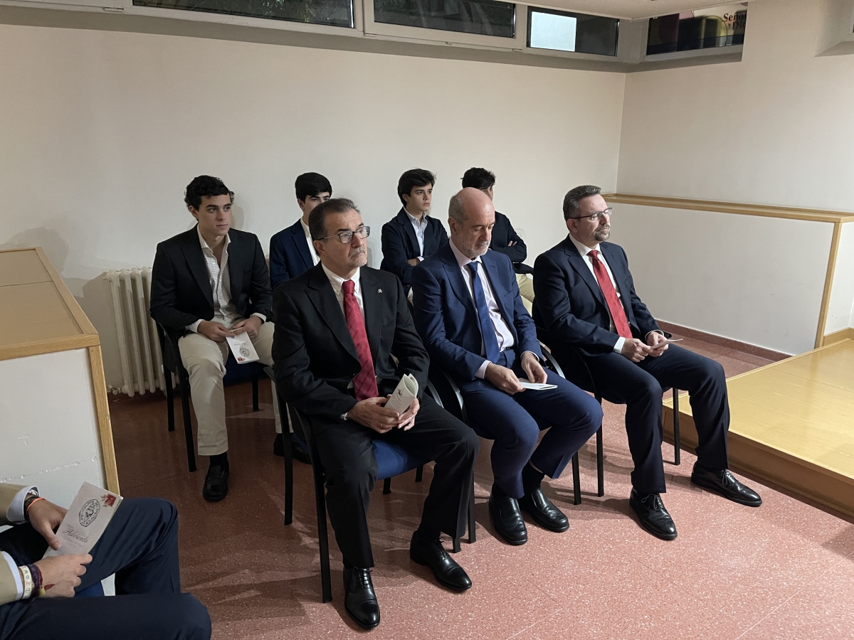 Se inició la cena con la bendición de la mesa por parte del P. Miguel Ángel Velasco CMF. El cierre sería con los brindis y palabras de nuestro director Dr. D. Carlos Pesado Riccardi y de nuestros Decanos, D. Ignacio Viadero Canduela, y D. Gonzalo Camacho Gómez.