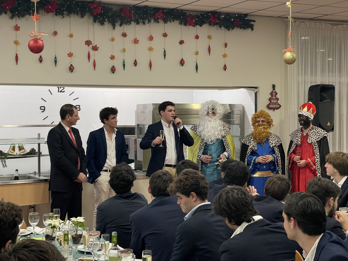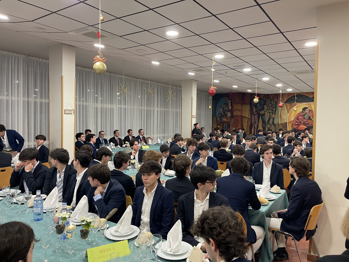Otro de los momentos especiales de la noche fue la Cena de Navidad. Este es el único momento del curso donde toda la comunidad educativa se sienta íntegramente a la mesa. Siempre es un momento entrañable, de convivencia y fraternidad, reuniendo a colegiales, comunidad claretiana y personal del Mayor.