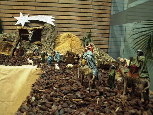 Pero siempre hay algún colegial que sabe buscar un hueco en su apretada agenda para colaborar en el montaje del Belén, y otros adornos navideños.