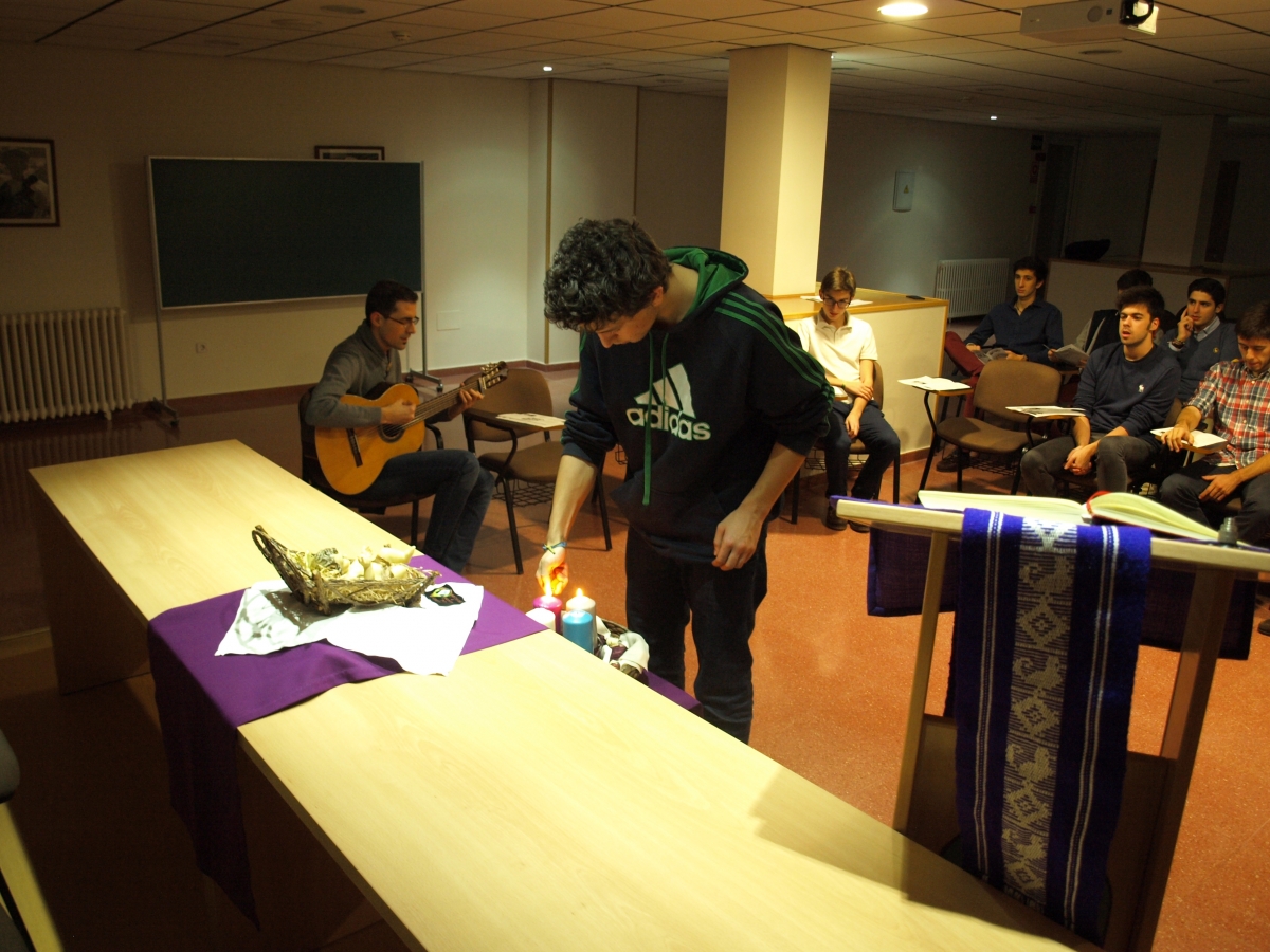 Rezar, reflexionar y cantar juntos, preparando la llegada de la Navidad. Colegiales de todas las promociones, miembros del Consejo Colegial, delegados de Comisiones y miembros del equipo directivo. Todos unidos.