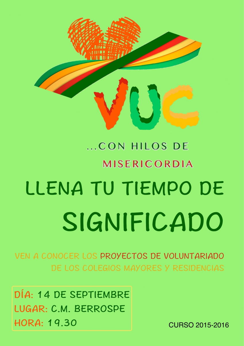 Como anuncíabamos días atrás, la tarde del 14 de septiembre tuvo lugar en el Colegio Mayor Berrospe la presentación de los Voluntariados que se ofrecerán este año a todos los colegiales que estén interesados.