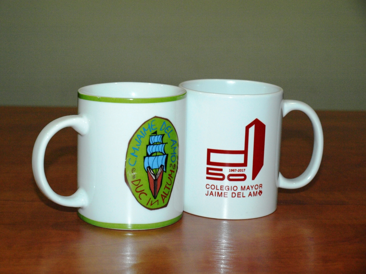 Con motivo del 50 Aniversario que hemos celebrado durante este curso hemos realizado algunos objetos para que la familia jaimita pueda conservarlos de recuerdo. En primer lugar llegaron las tazas, que tienen por un lado el escudo de nuestro Mayor y por el otro el logo del 50º aniversario.